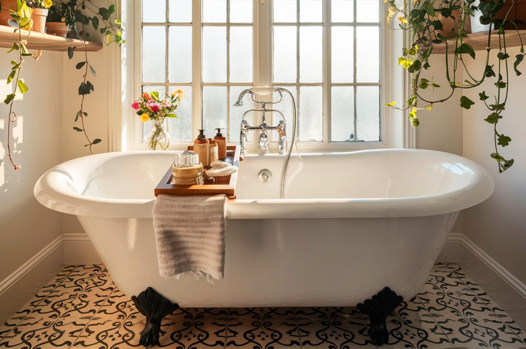 To keep things current, ground your clawfoot tub with bold tile choices. Consider graphic black-and-white patterns, geometric designs, or even zellige tiles with a handmade feel. These details lend an artsy edge and contrast nicely against the traditional curves of the tub. It’s a great way to inject personality into your bathroom while ensuring your space looks fresh, layered, and thoughtfully designed—not stuck in another era.