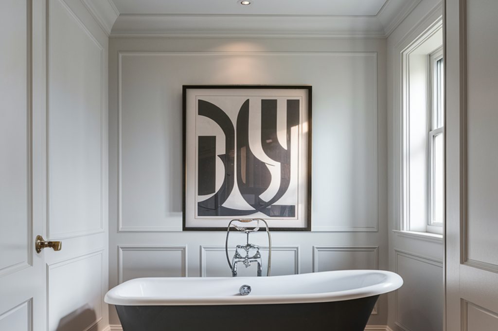 Swap out vintage florals or ornate frames for modern or abstract art. Hanging a large-scale piece near the tub instantly shifts the visual tone, adding interest and contrast. Think bold brushstrokes, monochrome sketches, or photography. Even a framed textile or contemporary line drawing can inject personality. Art helps express your style and connects the tub to the rest of your home’s aesthetic.