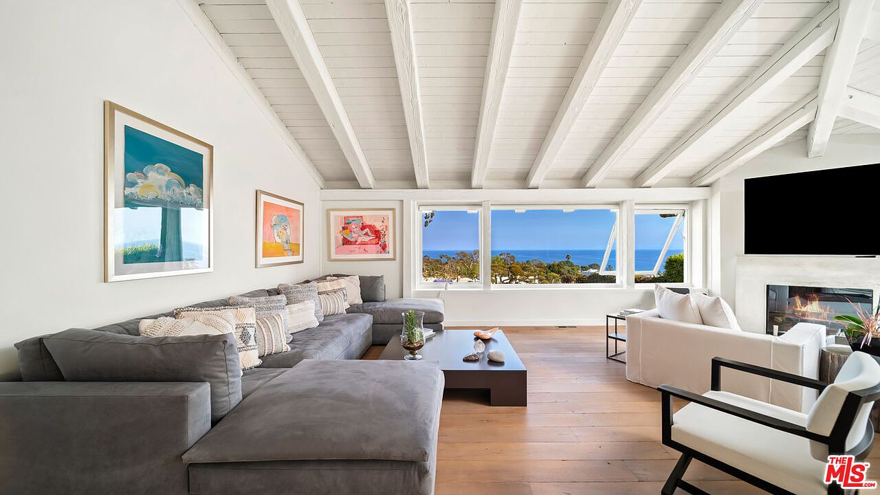 This stunning estate, located in the prestigious coastal city of Malibu, CA, exemplifies modern luxury blended harmoniously with the natural coastal environment. Though the exact year of construction is not specified, the home has been thoughtfully updated with contemporary renovations that enhance both comfort and style. Listed at $10,450,000, this expansive property offers seamless indoor-outdoor living across a generous plot area with spacious square footage designed for sophisticated coastal living. The interior boasts high wood-beamed ceilings throughout, skylights that flood rooms with natural light, and numerous French doors to integrate the indoor living spaces with the serene outdoor environment. Outdoor living is equally impressive, with a private backyard oasis including a sleek linear fireplace, outdoor kitchen with Viking appliances, lounge areas, a pool with an automatic cover, a Jacuzzi, fire pit, outdoor TV, and mature shade trees.