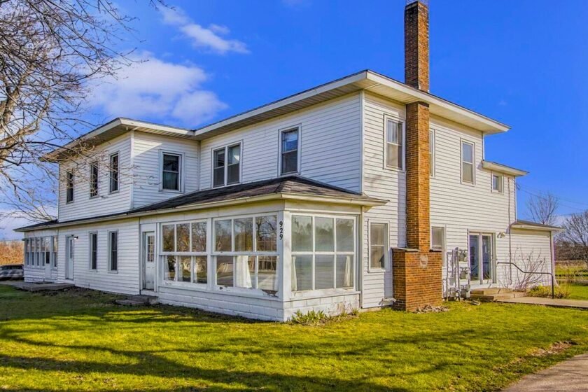 Built in 1876, this charming farmhouse in Otsego, Michigan, spans 3,925 square feet. With six bedrooms and four bathrooms, the home combines historic farmhouse style with modern functionality. The main floor features a huge kitchen, a main-floor laundry, and a cozy den/office. The 3.2-acre lot includes a large garage, a circular driveway, and four outbuildings with electricity. Listed at $350,000, the property is ideal for those seeking a spacious, historic retreat.