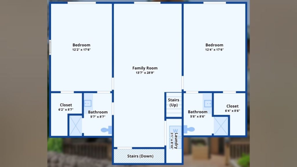 The lower level offers a spacious and versatile layout designed for comfort and privacy. Two generous bedrooms sit on opposite ends, each paired with a full bath and walk-in closet, ideal for guests or extended family. At the center, a large family room invites relaxation and gathering. A dedicated laundry area and dual stair access add function to the flow, completing a level that balances convenience with retreat-like charm.