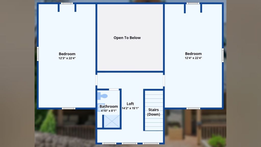 The upper floor offers a peaceful retreat with two generously sized bedrooms flanking an open loft area that overlooks the main living space below. A shared bathroom adds functionality, while the loft provides the perfect nook for reading, work, or play. With an airy, open-to-below layout and abundant natural light, this level feels spacious and serene—ideal for relaxation or a quiet escape within the home.