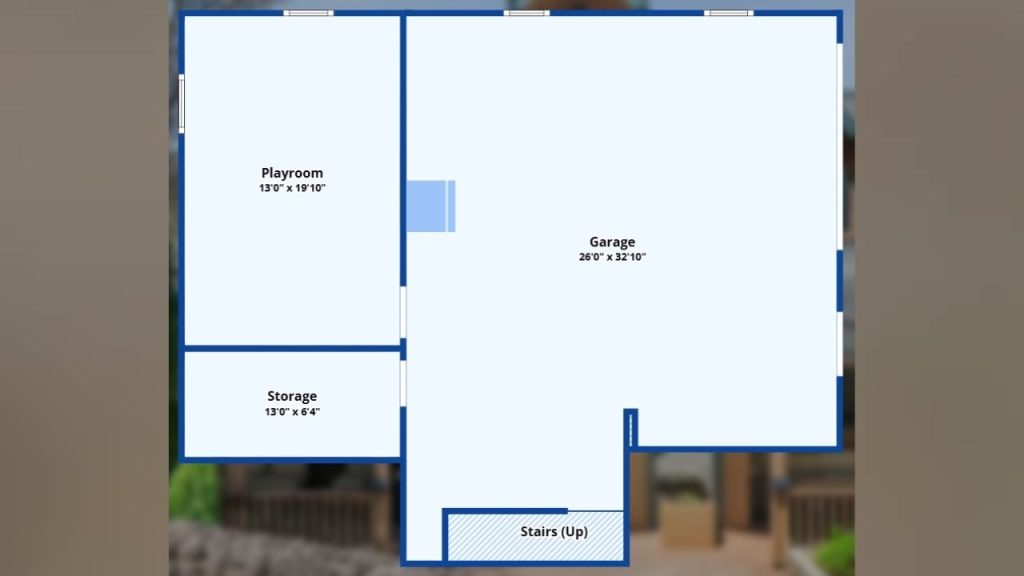 The basement offers versatility and function with a spacious garage ideal for multiple vehicles or workshop space. A dedicated playroom provides a perfect area for kids or hobbies, while the adjacent storage room keeps seasonal items neatly tucked away. Whether you’re organizing gear or creating space for fun, this floor delivers practical comfort with room to grow.