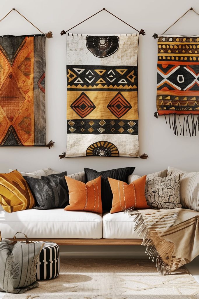 Wall hangings are an excellent way to add texture and visual interest to your walls. Choose woven tapestries, beaded curtains, or fabric wall art with traditional African motifs and patterns.