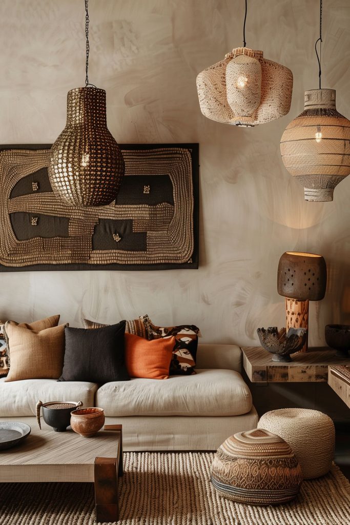 Lighting plays a crucial role in setting the mood and ambiance of your Afrohemian space. Choose lighting fixtures with unique shapes and materials that reflect the eclectic nature of your decor.