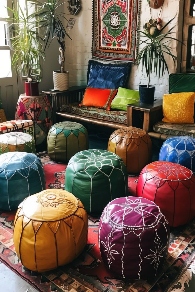 Choose poufs in vibrant colors and intricate designs to add a touch of Moroccan elegance to your Afrohemian decor.