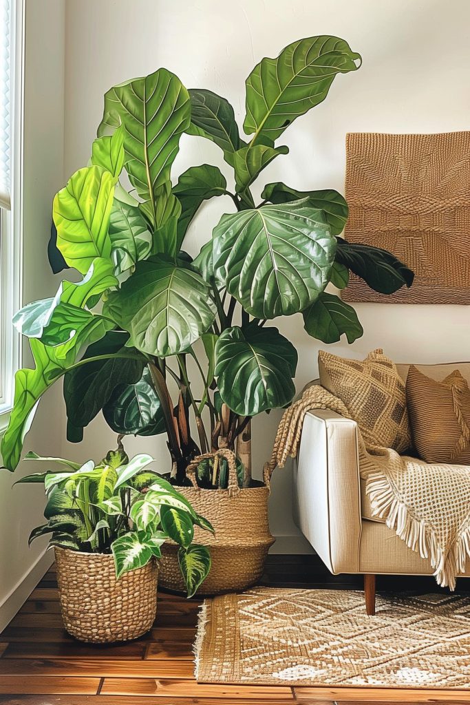 Adding greenery to your Afrohemian decor brings a sense of life and vitality to your space. Choose large, leafy plants like fiddle leaf figs, palms, or rubber plants to create a tropical oasis indoors.
