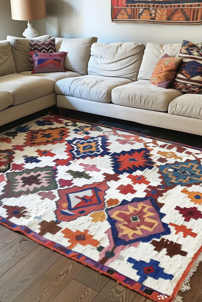 Tribal-inspired rugs are a key element of Afrohemian decor, adding warmth and texture to your floors. Look for rugs with bold geometric patterns, tribal motifs, or traditional Berber designs.