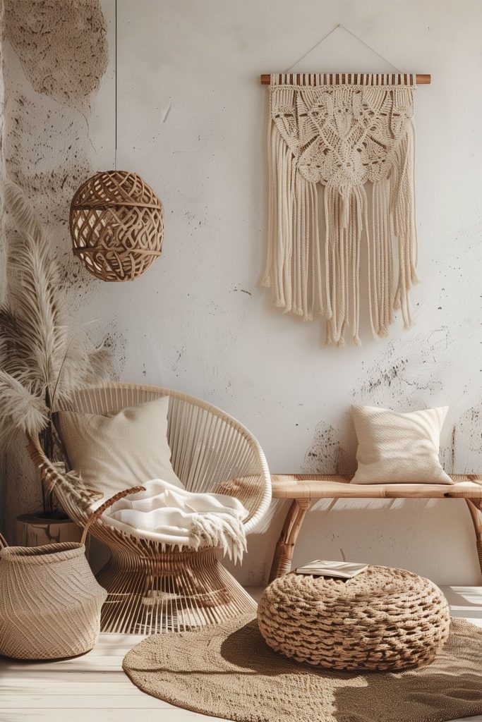 Macramé, with its intricate knotting techniques, adds a touch of bohemian charm to any room. Incorporate macramé wall hangings, plant hangers, or curtains to introduce texture and visual interest to your space.