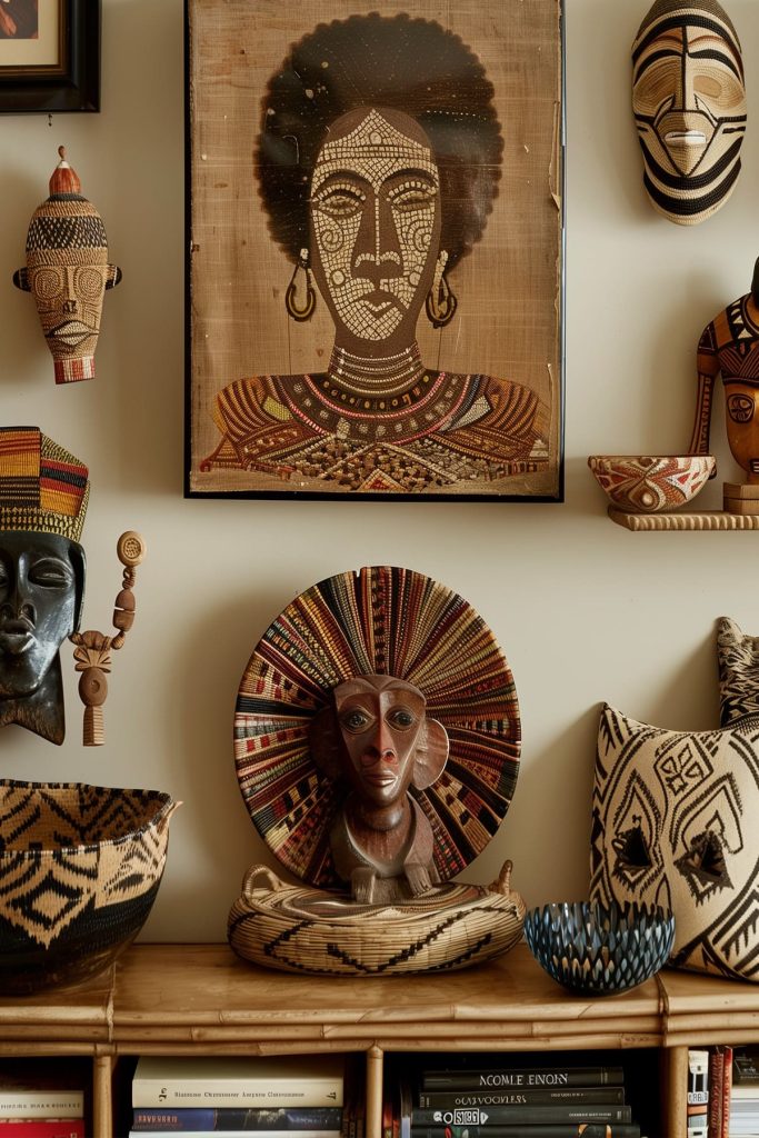 African art is rich in history and tradition, and displaying handcrafted artifacts in your home is a way to honor that heritage. Adorn your walls with intricately carved wooden masks or sculptures, each telling a unique story.