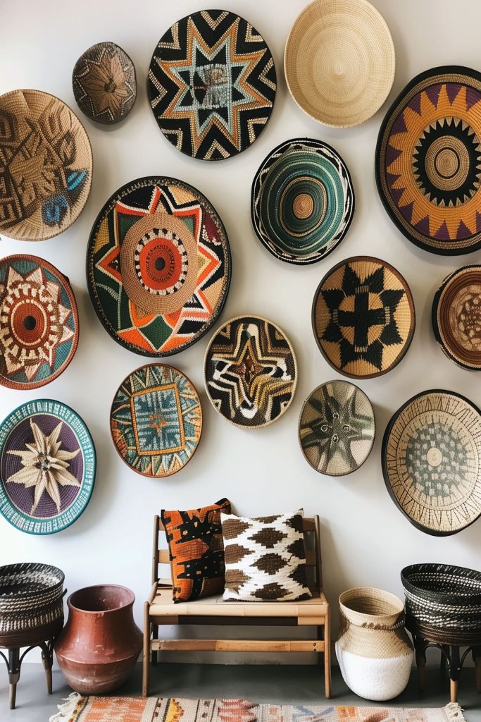 Consider displaying baskets with intricate designs or vibrant colors to add depth and dimension to your space.