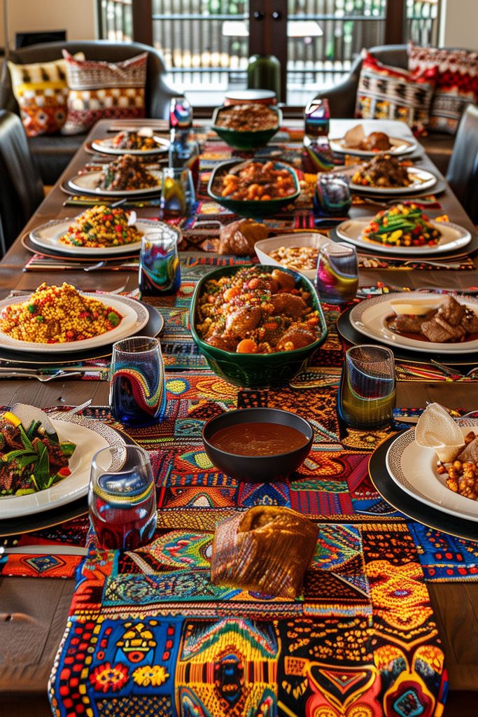 Set the scene for a memorable dining experience with African-inspired table settings and cuisine. Use colorful African-print tablecloths or placemats as the backdrop for your meal. Serve traditional African dishes like jollof rice, injera with stew, or bobotie to immerse your guests in the rich flavors and aromas of African cuisine.