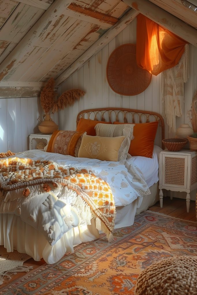 Orange Boho Attic Bedroom