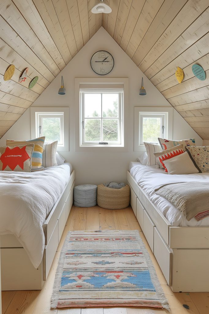 Colorful Twin Attic Bedroom