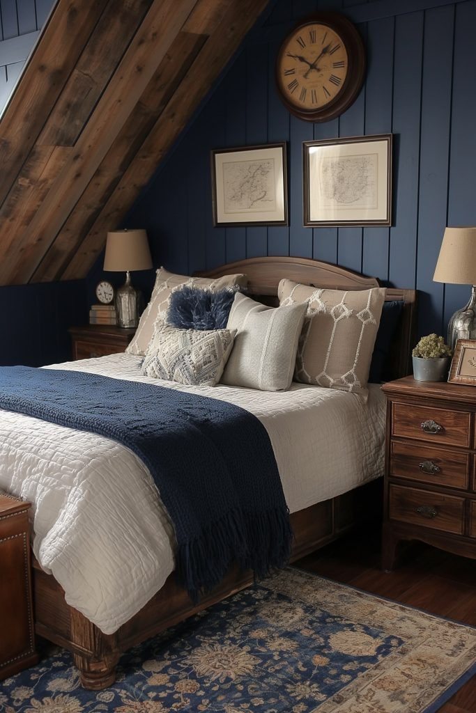 Blue Elegant Attic Bedroom