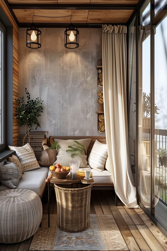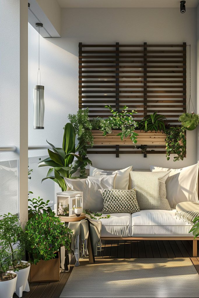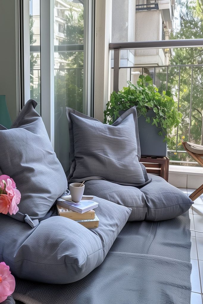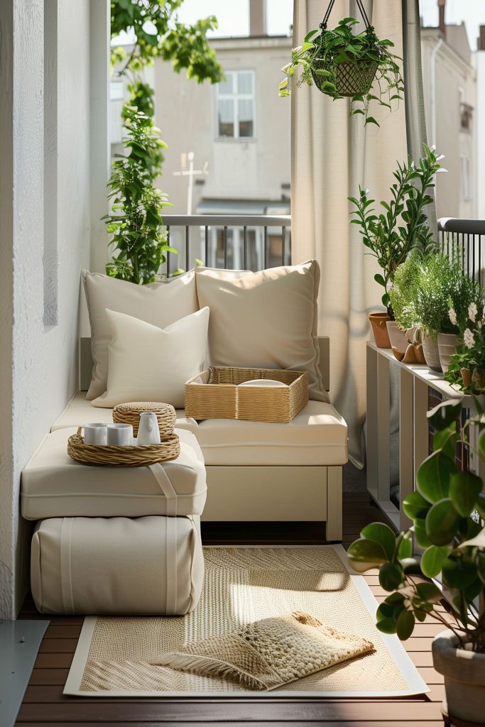 Add comfortable seating options like a small outdoor sofa, a couple of chairs, or a hammock to turn your balcony into a cozy retreat.
