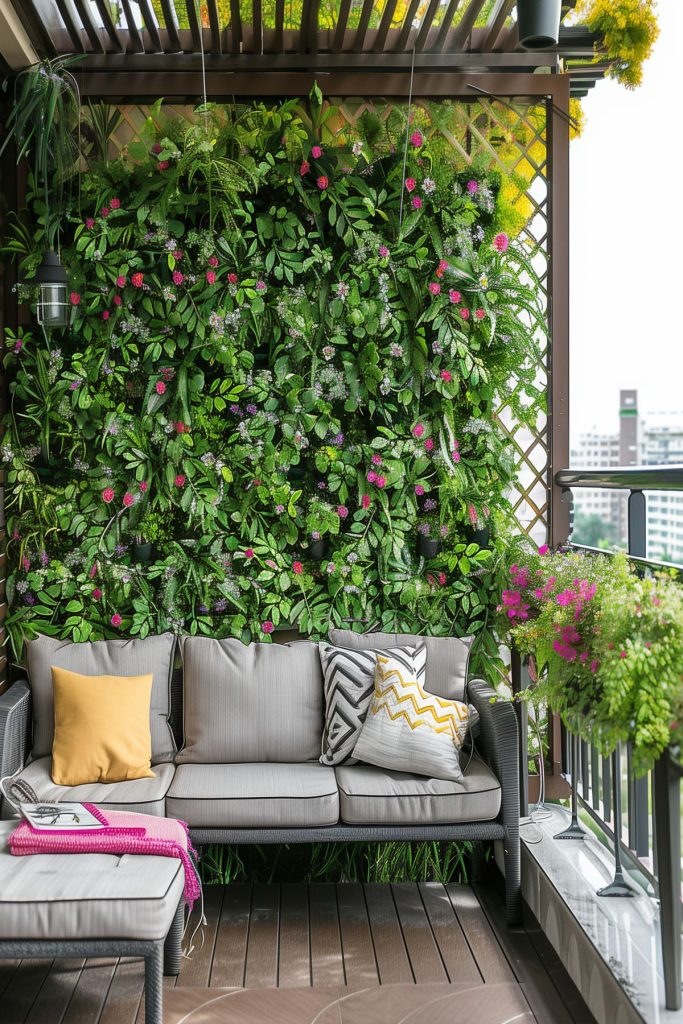 Maximize space by installing a vertical garden. Use wall-mounted planters or a trellis with climbing plants to create a lush backdrop.