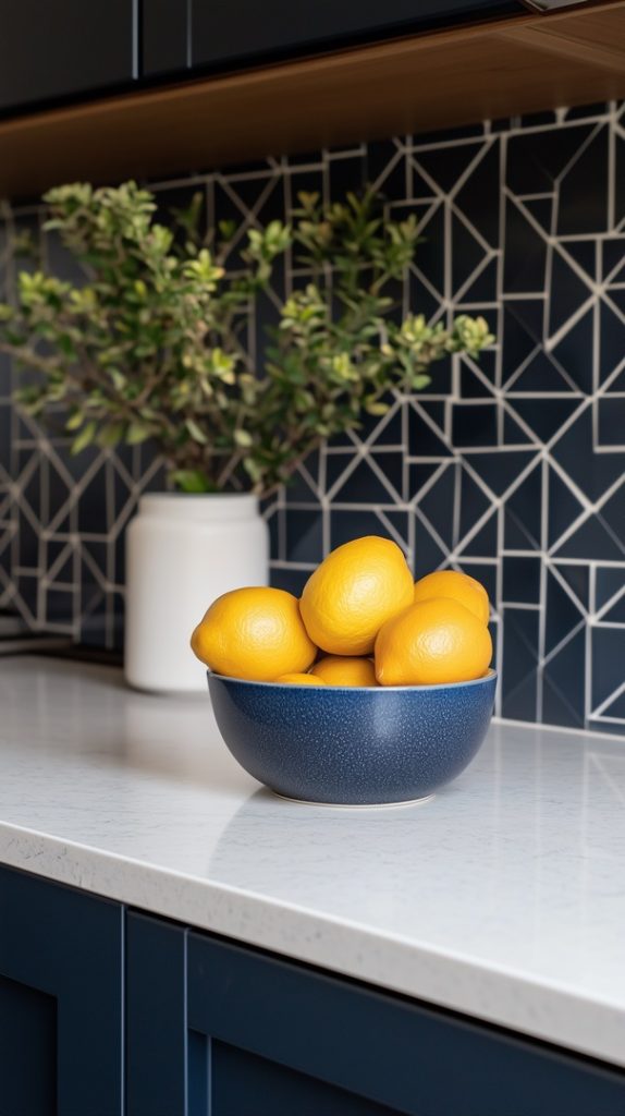 Navy Blue Tiled Backsplash for a Compact, Sleek Design