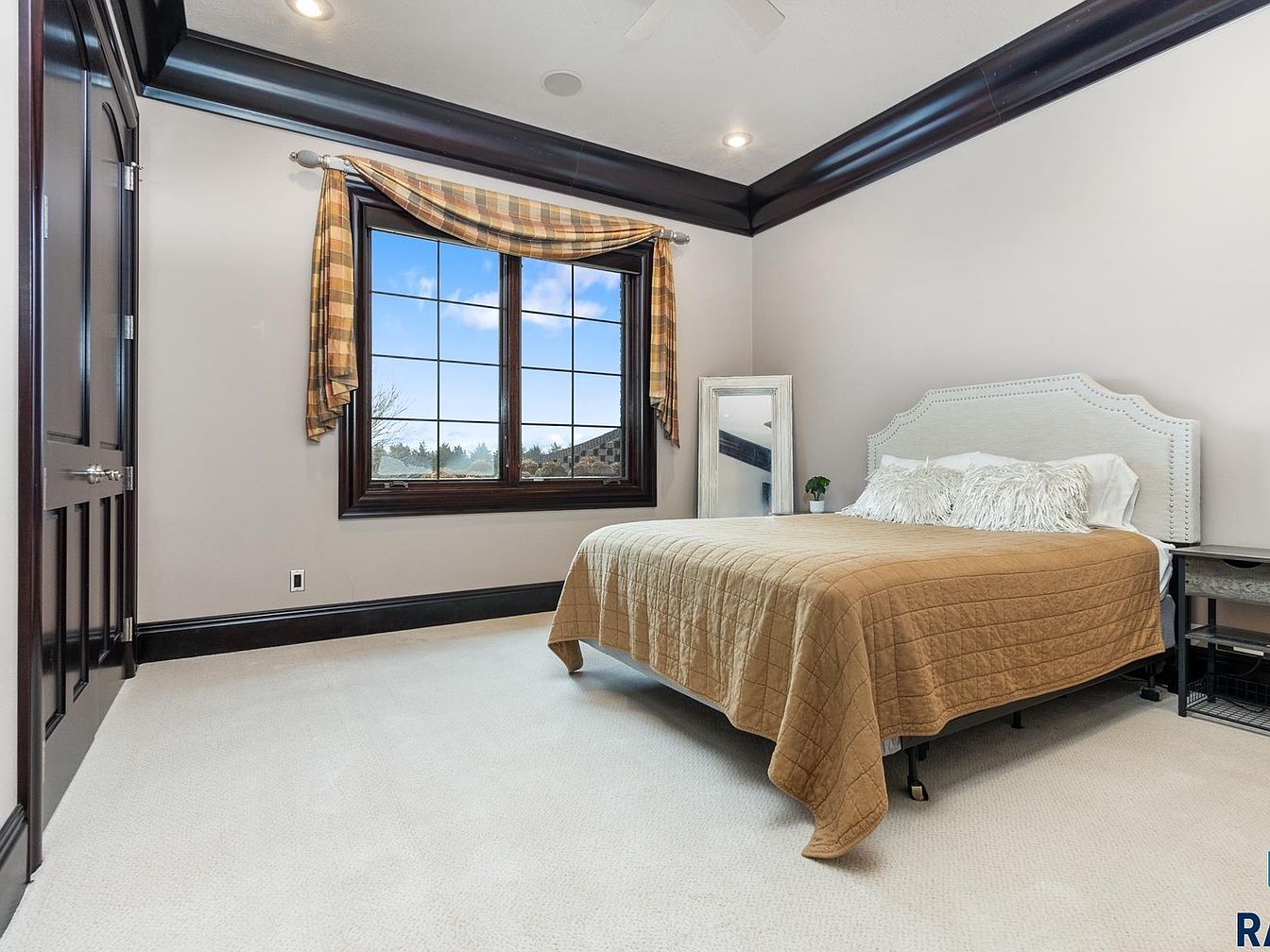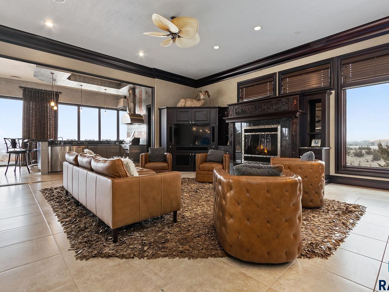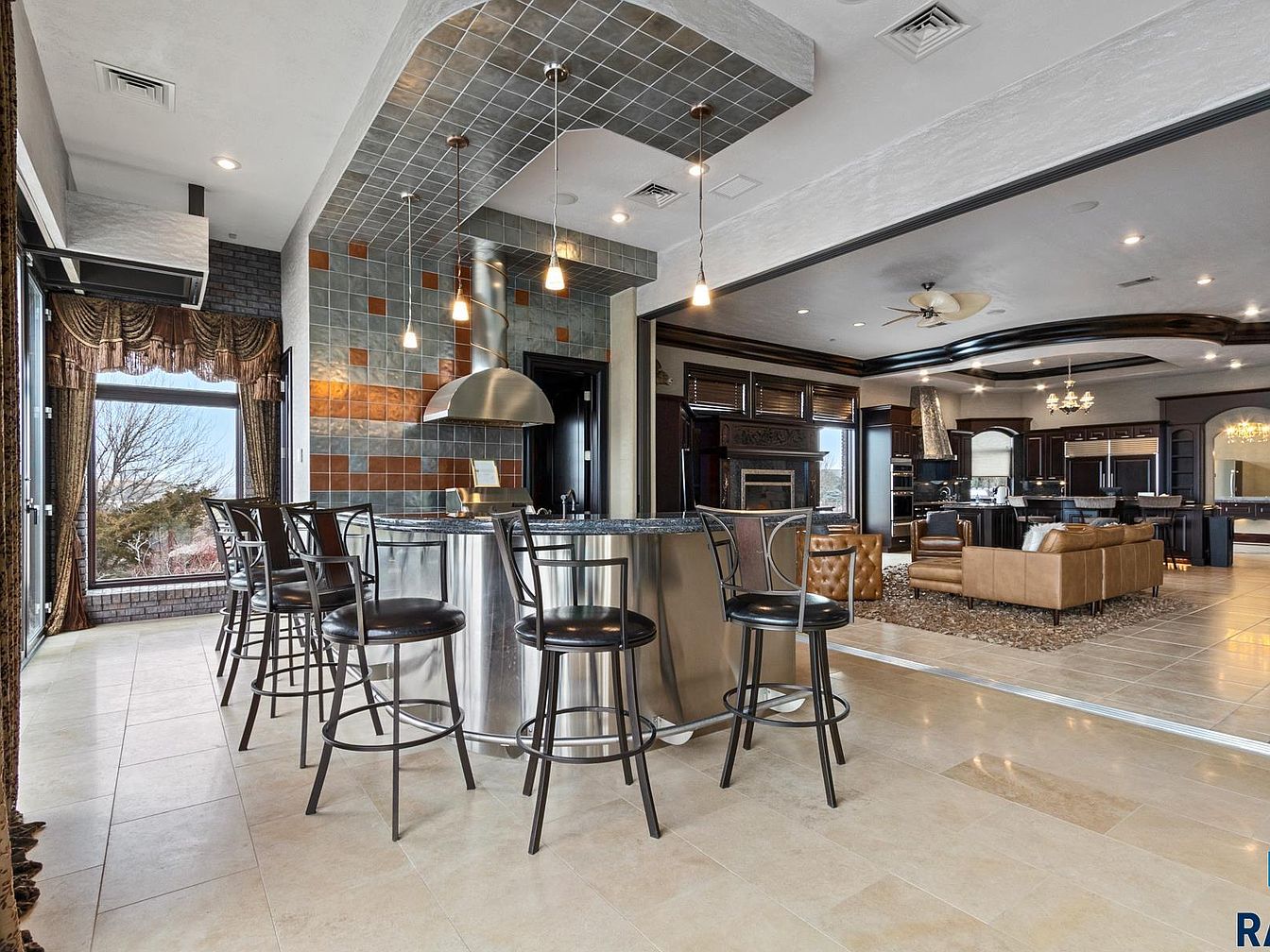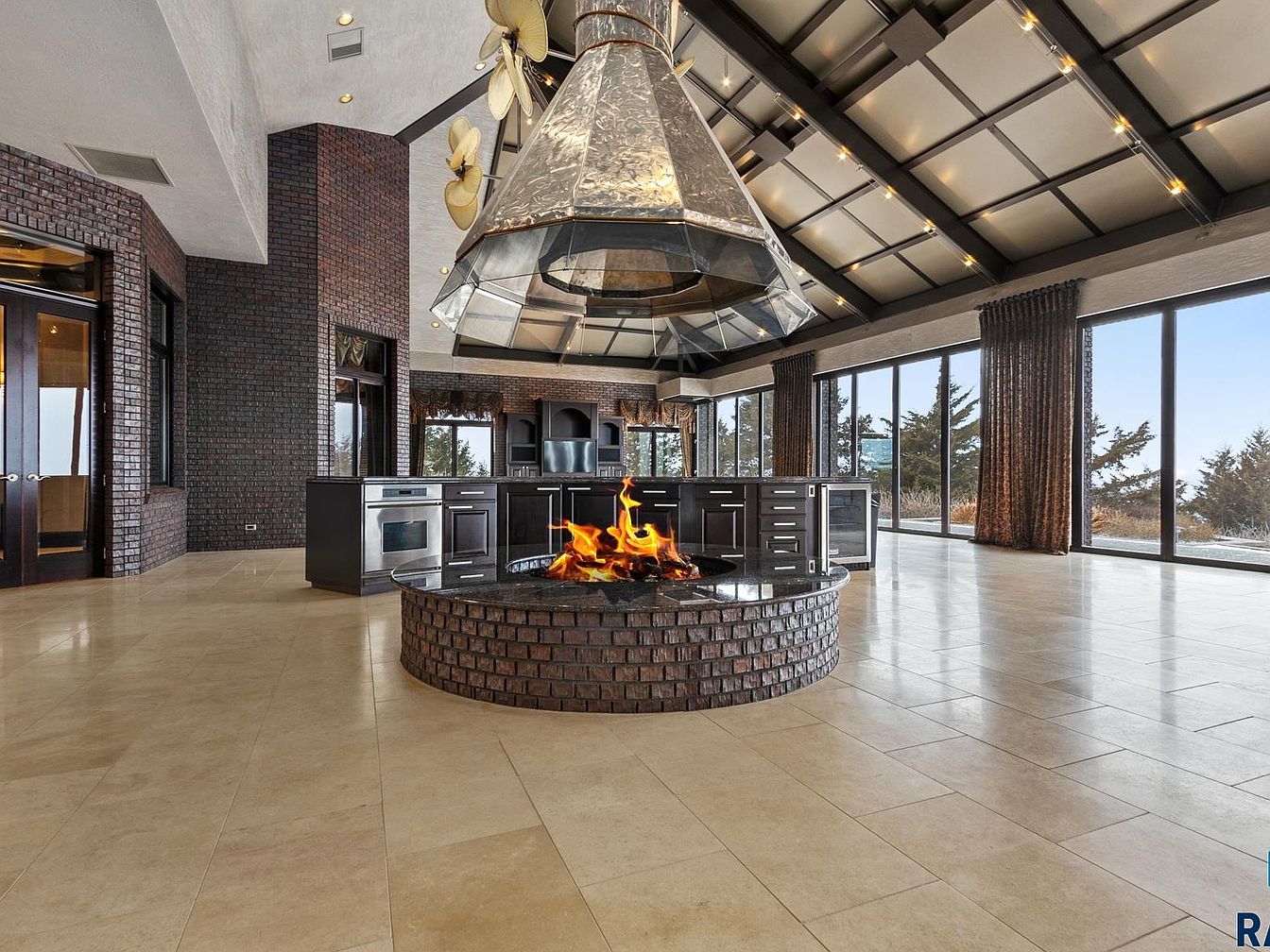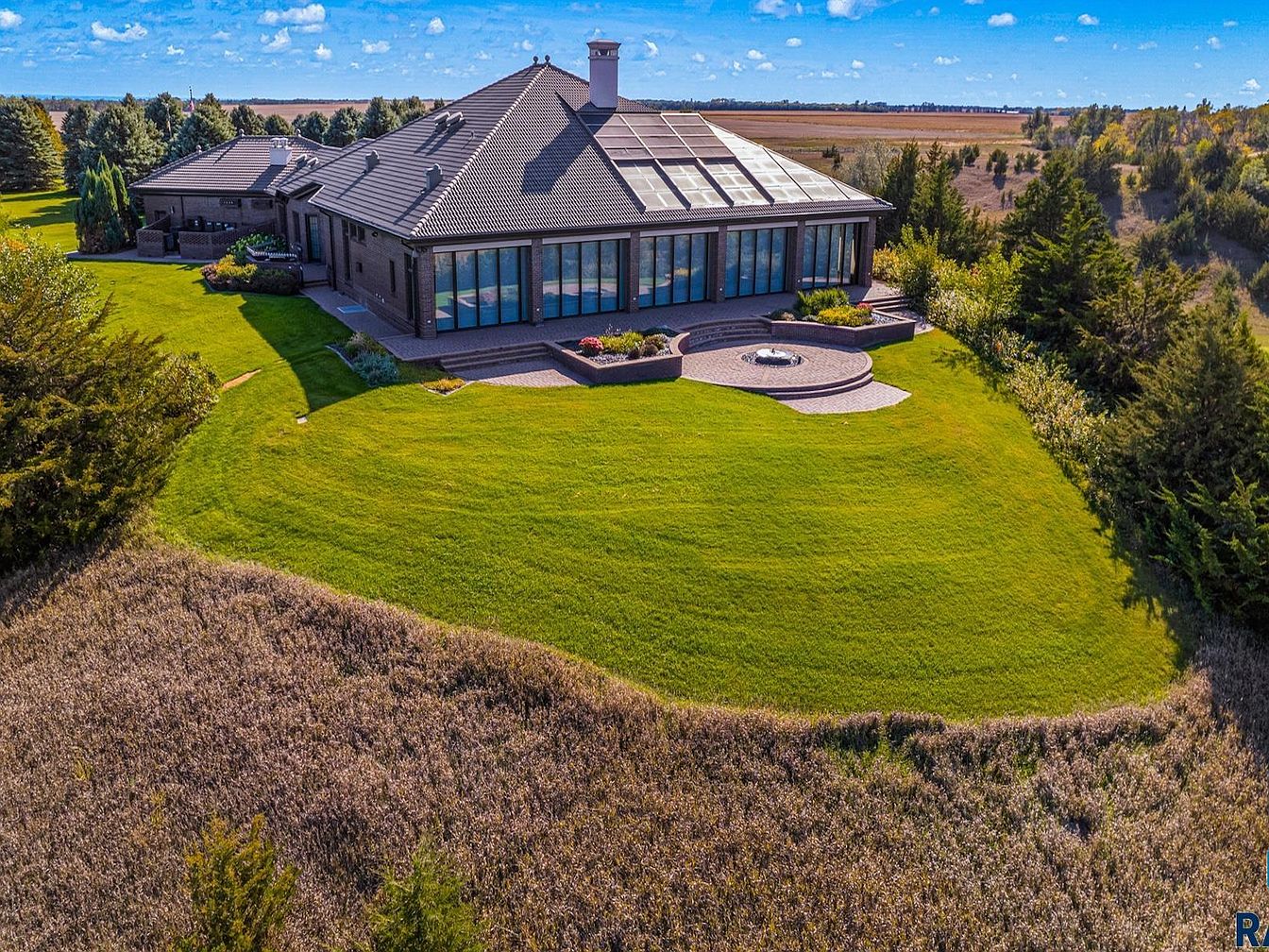 Valley View Villa is a remarkable estate blending Victorian elegance with modern luxury in Mitchell, SD, built atop a bluff with expansive views of the Firesteel Creek Wildlife Refuge. This stunning property, encompassing 14.76 acres, is ideal for family life, featuring a grand foyer that opens to an indoor/outdoor living space with a retractable roof, making it perfect for entertaining. Built in the late 20th century, it boasts recent renovations including a state-of-the-art catering kitchen and landscaped outdoor amenities like manicured putting greens. Priced at $4,649,000, the 6,632 sq ft villa encompasses tranquility and nature, providing a serene escape while remaining accessible to nearby amenities.