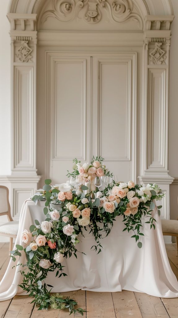 Transform your wedding reception with stunning bride and groom table design ideas that will leave your guests in awe. Find creative inspiration and practical tips to drape a lush floral garland across your table for a breathtaking centerpiece.