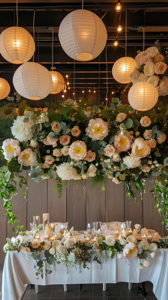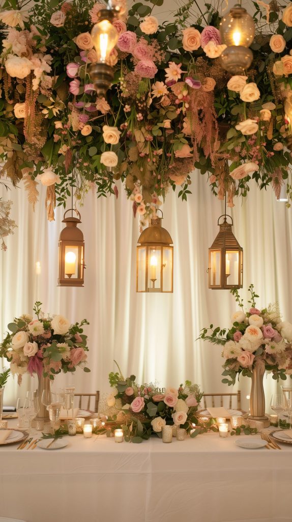 Discover stunning bride and groom table design ideas that will impress your guests! Elevate your wedding decor with hanging decorations like flowers, lanterns, or fabric suspended above the table.