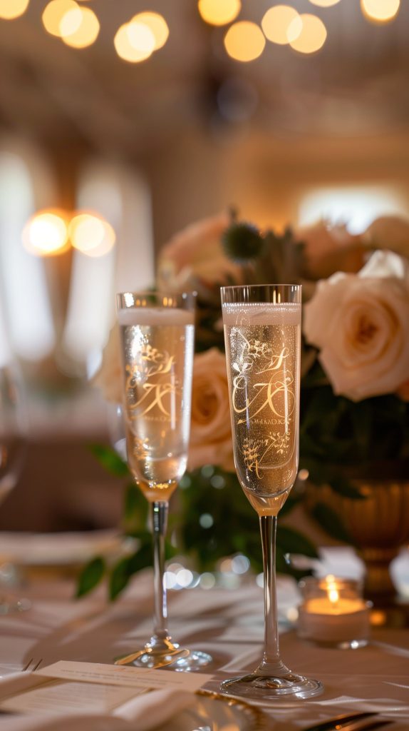 Discover exquisite bride and groom table designs that will captivate your guests at your wedding. Elevate your reception with personalized or ornate champagne flutes, adding a touch of elegance and personal flair to your celebration.