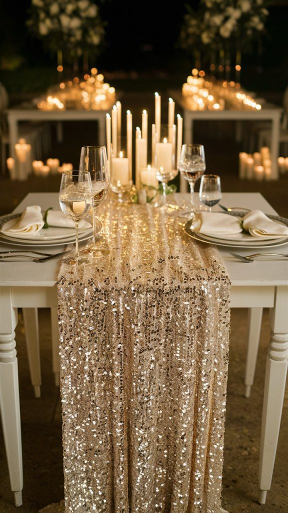 Transform your wedding with dazzling Bride and Groom Table Design Ideas. Discover how a Sequin Runner can add sparkle to your centerpiece effortlessly.