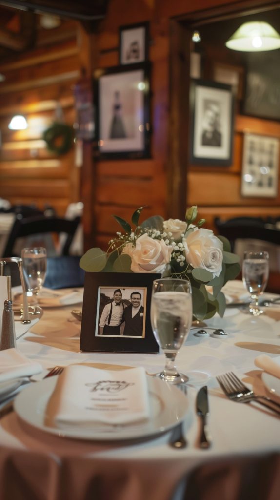 Discover stunning bride and groom table design ideas that will captivate your guests’ attention. Transform your wedding decor with elegant table settings and personalized touches like a beautiful photo display featuring framed photos of the couple.