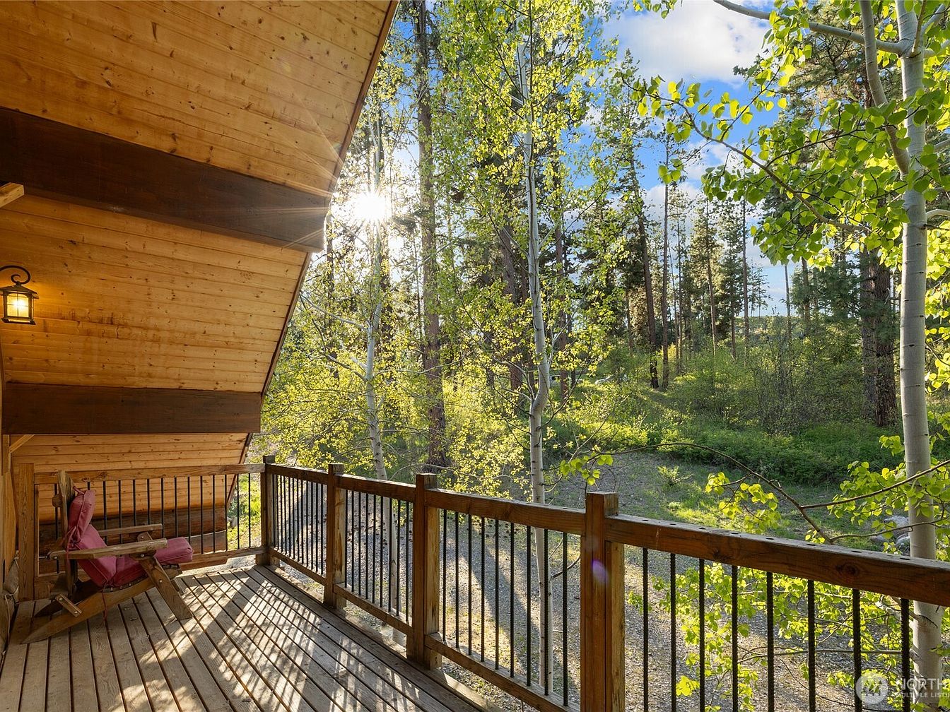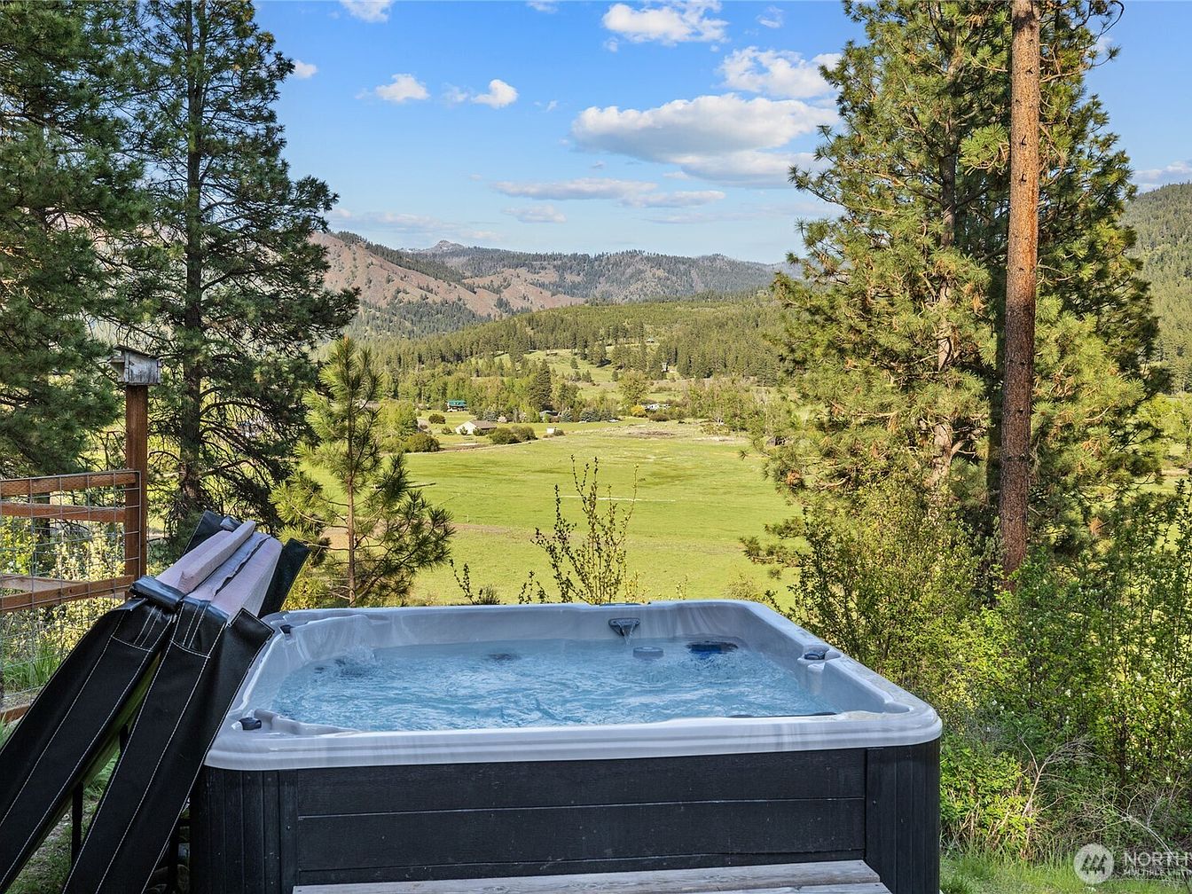 This beautiful log home in Cle Elum, WA, embodies classic rustic mountain architecture with its heavy timber logs and large, sharply pitched roof accented by expansive windows. The property, listed at $829,000, offers breathtaking 180-degree valley views that flood the sun-filled interiors with natural light. French doors open onto a large deck featuring a fire ring, hot tub, and sauna — ideal for relaxing in all seasons. Inside, the home blends vintage charm and modern comforts, including hickory cabinets and floors, a cast iron stove, gas stove, and slate accents. The main floor has two cozy bedrooms and a luxurious clawfoot tub, while the upstairs primary suite boasts a private bath and balcony to take in stunning sunlit views. This home is perfect as a full-time residence, short-term rental, or weekend retreat, offering ultimate peace, privacy, and access to outdoor activities such as hiking and snowmobiling.