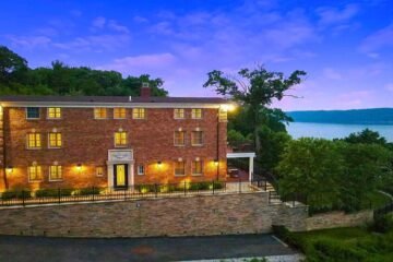 Features red-brick architecture and travertine patios, along with Gaggenau appliances, a heated driveway, and forever-protected Hudson River views.