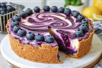 Indulge in this creamy and zesty Lemon Blueberry Cheesecake, featuring a buttery graham cracker crust, a luscious lemon-infused filling, and a vibrant blueberry swirl.