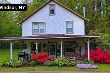 A peaceful home in Windsor, NY with spacious interiors, surrounded by lush greenery and vibrant blooms. It blends classic charm with a relaxed countryside vibe, perfect for quiet living.