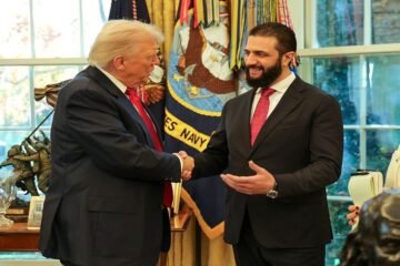 Trump jokes about Syrian leader’s wife during historic White House meeting.