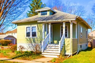 Home features exposed beams and hardwood floors enhance this bungalow’s classic charm and cozy character.