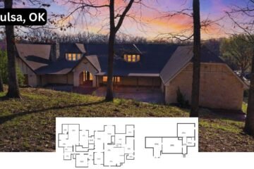 This 8,627 sq. ft. Tulsa estate blends rustic elegance with timeless charm, set on 1.72 acres of serene, wooded beauty.