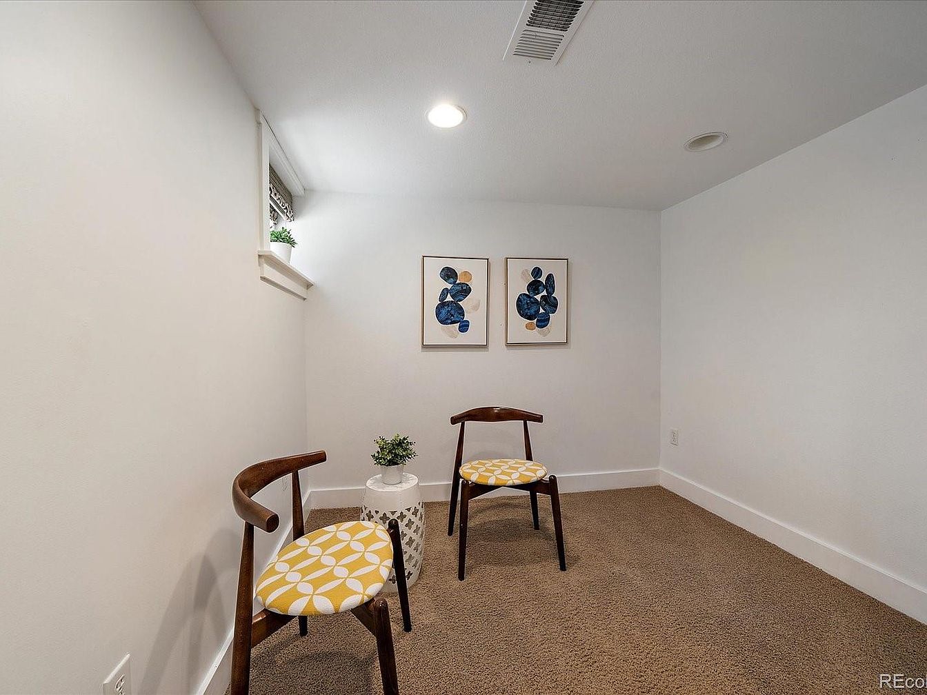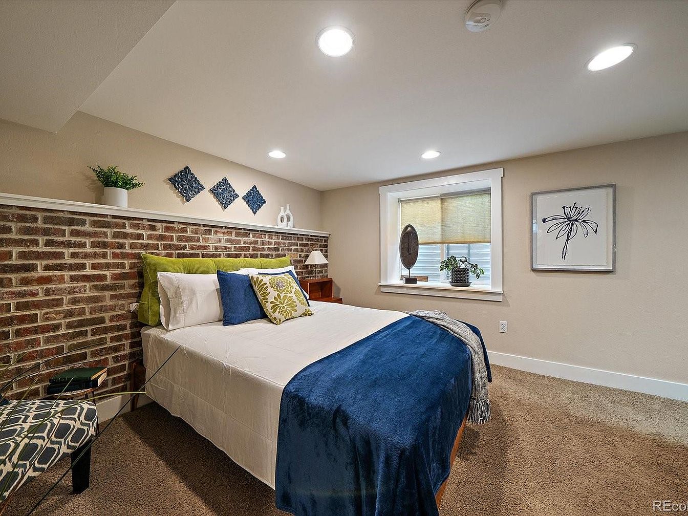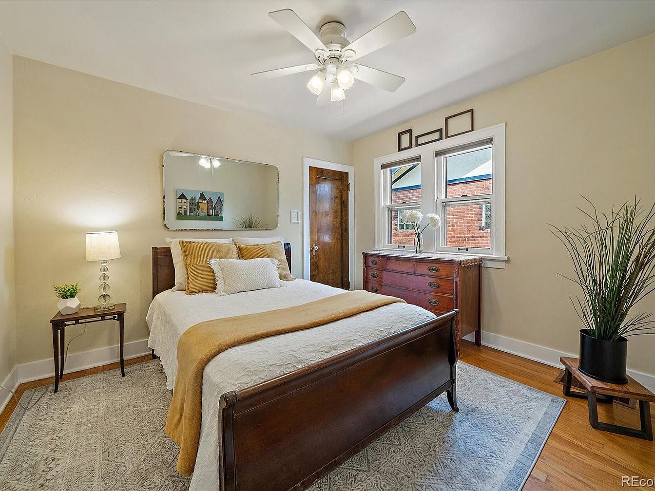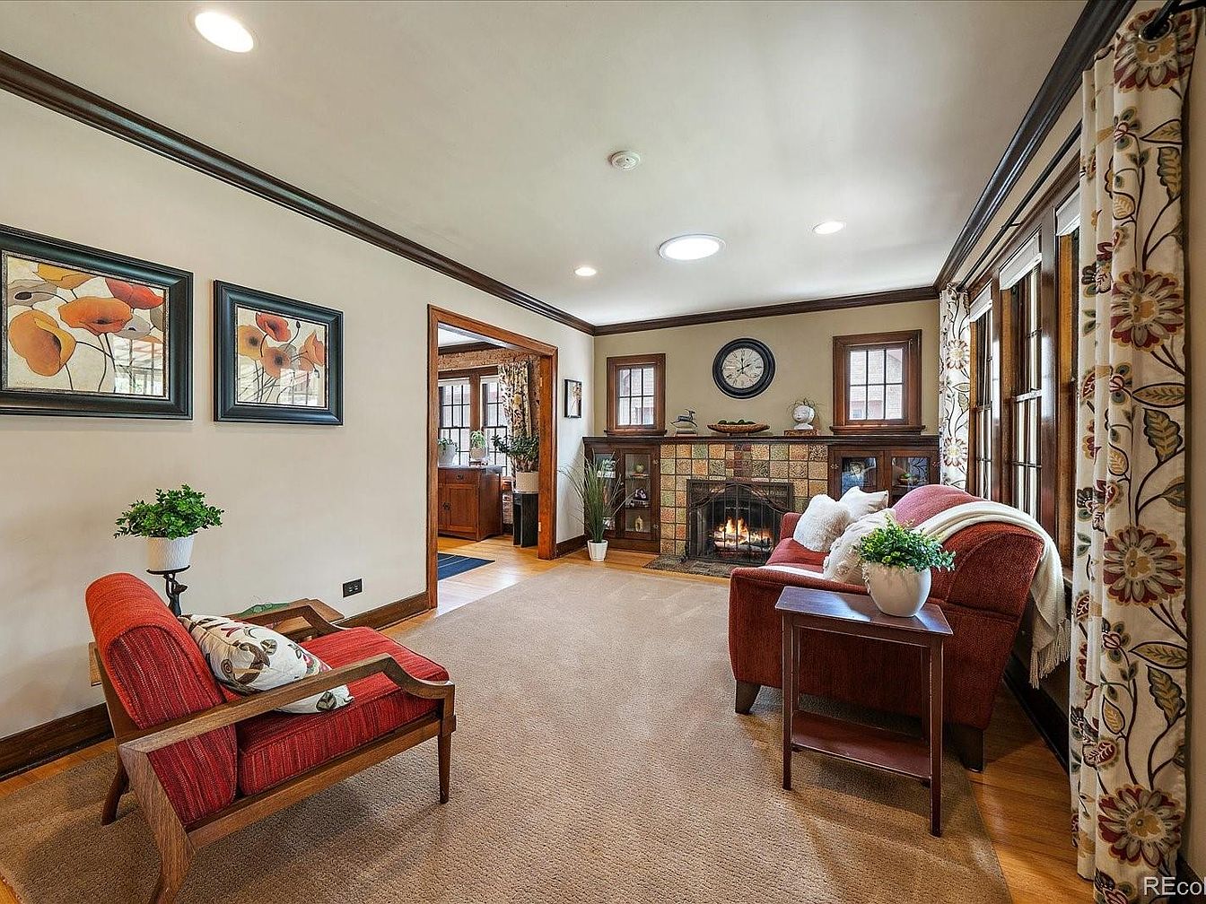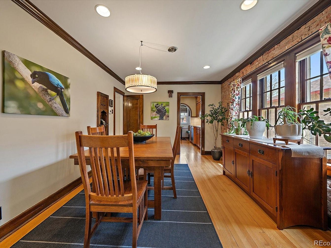 This exquisite Tudor-style bungalow, built in the 1920s, is nestled in the desirable Platt Park neighborhood of Denver, Colorado. Priced at $960,000, this beautifully renovated home artfully combines classic architectural elements with modern conveniences. The charming exterior features traditional brickwork, steeply pitched gables, and a welcoming covered front porch. Inside, the spacious living room boasts a striking tiled fireplace flanked by built-in bookshelves, providing a cozy yet elegant gathering space. The dining area is bright and inviting with expansive southern-facing windows and an exposed brick wall that seamlessly connects to a fully updated kitchen. The kitchen is equipped with ceiling-height cabinetry, ample counter space, and top-tier Bosch appliances, highlighted by a large original farmhouse sink and additional pantry space. The preserved eat-in nook, complete with built-in cozy seating, adds a distinctive charm and practicality for family meals. On the main level, there are two comfortable bedrooms and a stylishly upgraded bathroom, along with original built-in hallway linen storage maintaining the home’s character. The finished lower level expands the living space with a second living room featuring surround sound, a bright laundry room with abundant storage, a third bedroom with an egress window and walk-in closet, plus a flexible bonus room perfect for an office or yoga studio. The oversized two-car garage includes a 220v outlet suitable for electric vehicle charging. Outdoor living is equally impressive with a private backyard oasis offering a shaded patio, lush lawn, hammock setups, and a raised garden bed in the south yard. This lovingly maintained home’s total square footage and plot area emphasize comfortable living and outdoor enjoyment in a prime location only three blocks from popular local spots including Park Burger, Platt Park Brewery, Steam Coffee, Sweet Cow, and the entirety of Pearl Street’s vibrant amenities.