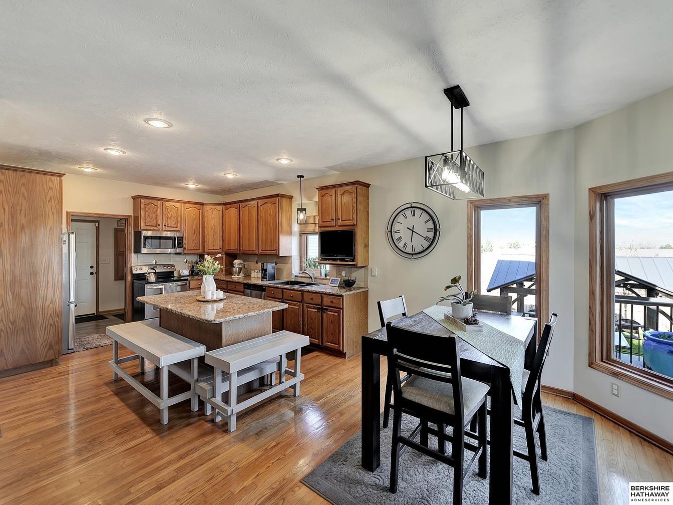 This stunning Ranch-style home is located in Cortland, Nebraska, situated on the edge of town within the popular Norris School district. Featuring 3 bedrooms and 3 bathrooms, this charming residence boasts a well-maintained and beautifully updated interior, highlighted by granite countertops throughout, designer light fixtures, two fireplaces, and a formal dining room enhanced with accent lighting above the kitchen cabinets. Recent renovations include new paint, roofs, air conditioning, water heater, and most windows, doors, and garage door replacements. The property also benefits from completely overhauled landscaping, a new privacy fence, hot tub, gazebo, and an extended driveway. Additionally, there is a finished and lofted outbuilding offering versatile space for storage, hobbies, or entertaining, complete with a bartop/serving area and plumbing ready for a bathroom installation. The home is listed at $549,900.
