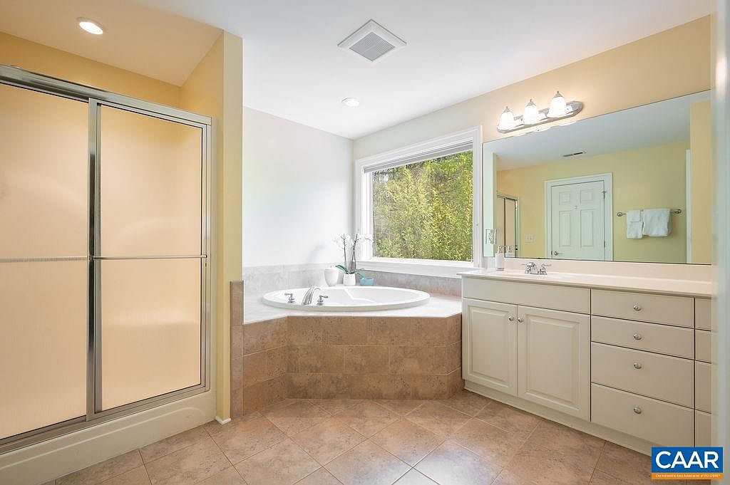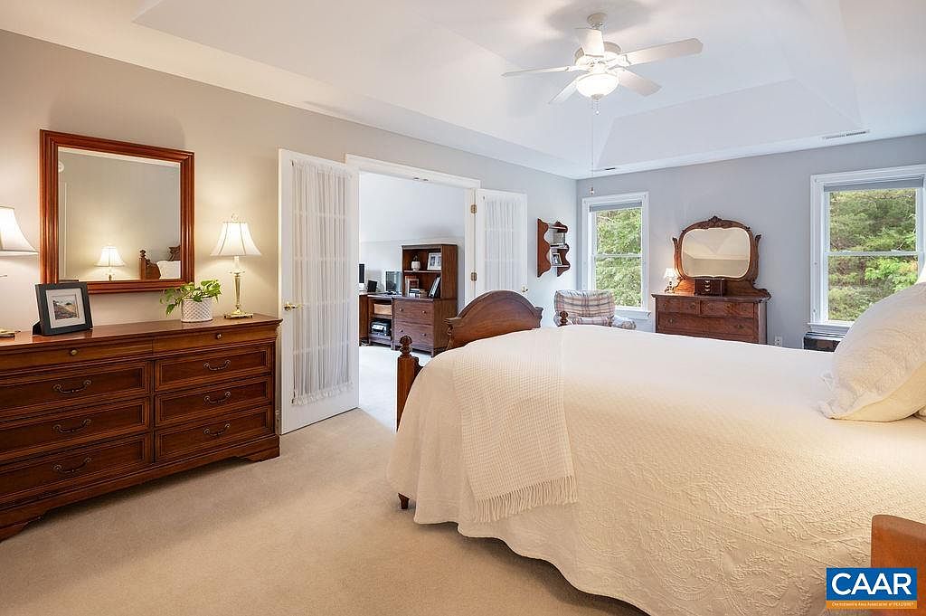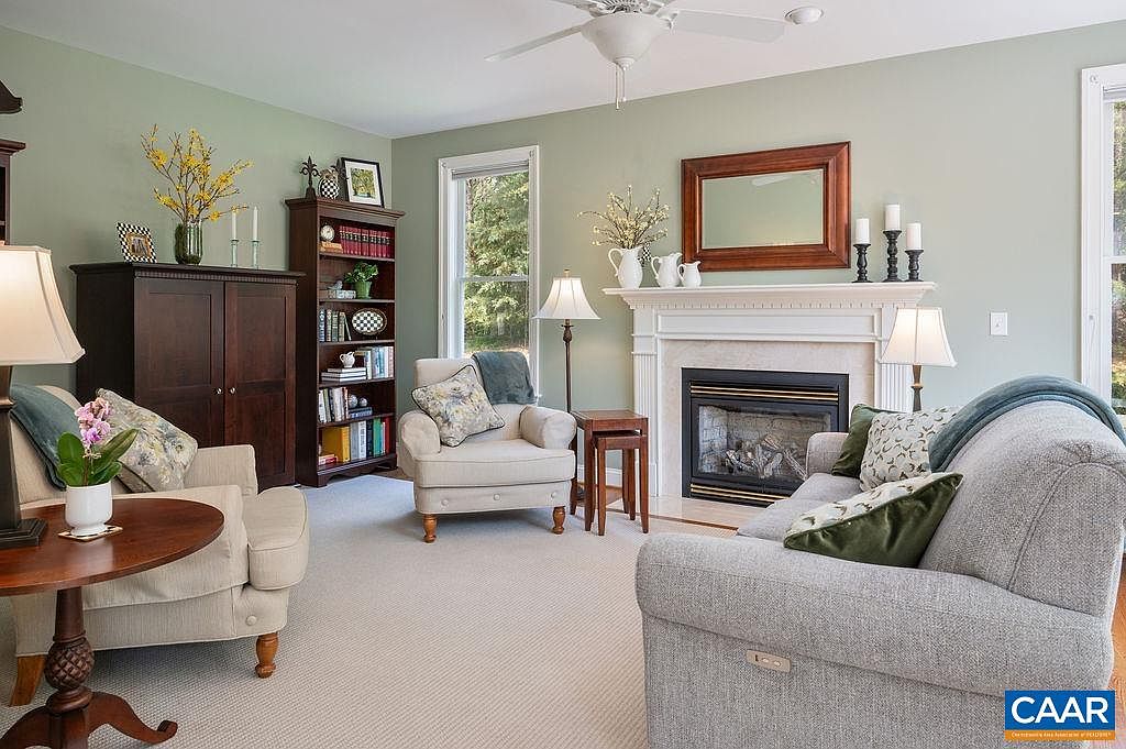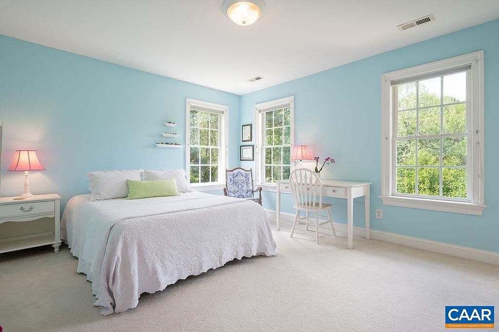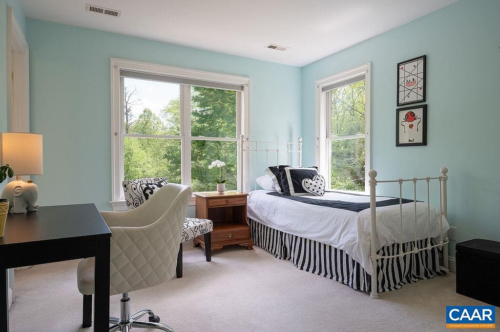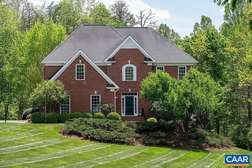 This beautifully crafted home in Crozet, VA, showcases classic all-brick architecture, lending it a timeless and sturdy presence. Nestled on a spacious 5.46-acre manicured estate, the property offers a rare combination of privacy and convenience, situated directly across from Brownsville Elementary School and in the midst of Western Schools district. Built by a meticulous one-owner, this residence features five bedroom suites and five and a half baths, with a thoughtful design emphasizing both comfort and functionality. The home includes a recently added terrace-level apartment with a kitchenette, built in 2020, ideal for guests, a nanny, or as a rental space. The primary suite impresses with double walk-in closets and an adjoining office with French doors, making it a private retreat. A newly updated kitchen boasts freshly painted white cabinets, granite countertops, double wall ovens, an island, and an open flow to a family room and the stunning outdoor backyard, which was renovated to include new bluestone patios, a fire pit, and a deck—perfect for entertaining or quiet relaxation amid the surrounding woods. Additional features include a long winding driveway and a sweeping front lawn that enhance the country setting while maintaining easy access to local amenities. The terrace level also offers a large unfinished space for storage or potential future expansion. Listed at $950,000, this home perfectly balances upscale living with natural beauty in an exceptionally convenient location.