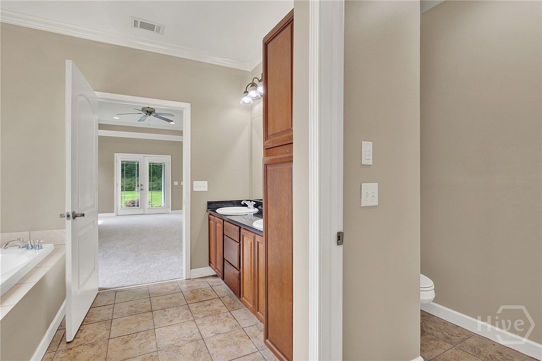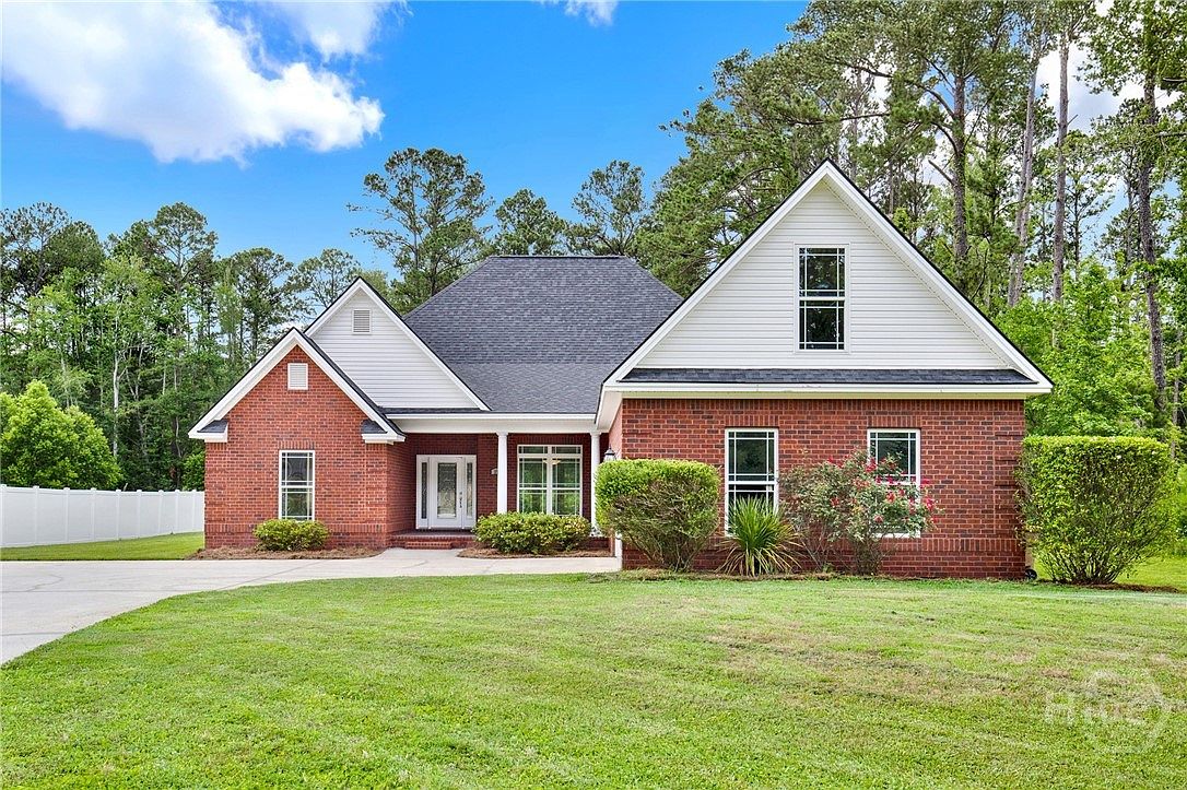 This charming all-brick home in Richmond Hill, GA, exemplifies a traditional architectural style with a welcoming façade featuring brickwork and clean rooflines accented by white siding in the gable ends. Located on over half an acre of serene, well-maintained land, this spacious 4-bedroom, 2-bath residence offers a generous floor plan ideal for comfortable living and entertaining. The home features rich wood floors and a cozy fireplace, enhancing its warm, inviting atmosphere. The updated kitchen is equipped with granite countertops, stainless steel appliances, and a stylish backsplash that adds a modern touch. The luxurious owner’s suite includes a soaking tub, tile shower, and double vanities, providing a spa-like retreat. French doors open to a covered back porch and a large, fenced yard perfect for outdoor activities and privacy. Additionally, a bonus room over the garage offers versatile space for office use, a playroom, or extra storage. This move-in ready home is conveniently located just minutes from Richmond Hill’s amenities and is listed at $465,000.