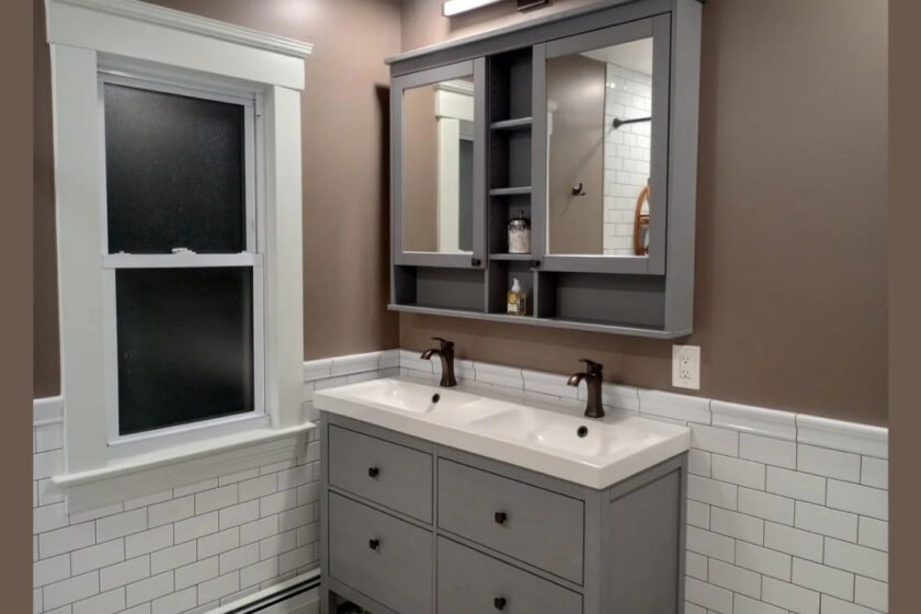 The original bathroom had seen several updates over the decades, including a 1940s cast iron tub and a leaking corner shower. The couple removed these outdated features, exposing the home’s original framework. The husband, a skilled plumber, redesigned the layout for better flow, while his wife handled the tile work, drywall, and painting. Together, they crafted a space that echoes the Folk Victorian style—simple yet refined—with thoughtful updates that honor the home’s past.