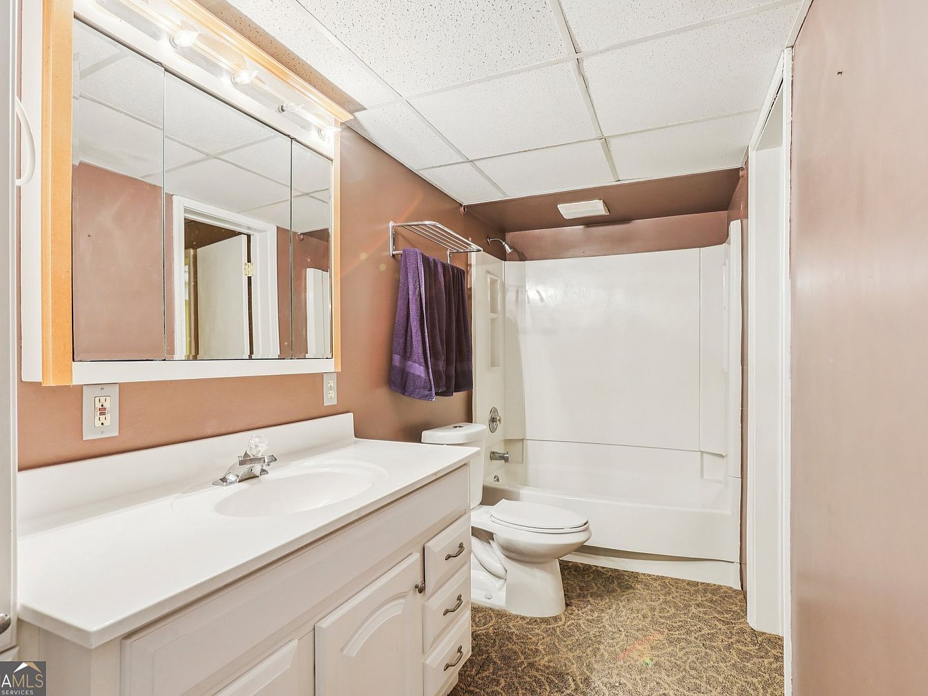 This elegant home in Newnan, GA, exemplifies a classic colonial architectural style characterized by its symmetrical facade, multi-pane windows, and steeply pitched gable roofs. The property is situated within the prestigious White Oak community, a highly sought-after golf course neighborhood that offers a serene and scenic lifestyle just minutes from major conveniences such as I-85, Piedmont Newnan Hospital, and the vibrant Ashley Park shopping and dining district. The home boasts over 6,300 square feet of finished living space spread across a spacious and versatile layout that includes five bedrooms and four and a half bathrooms. Noteworthy interior features include a grand two-story foyer, a great room, formal living and dining rooms, and a master suite located on the main level, complemented by a full finished basement. The property also contains a 2.5-car garage and an eat-in kitchen with ample entertainment space, all overlooking the picturesque fairways of the White Oak Golf Course. This listing is offered at $550,000 and is ideal for buyers willing to undertake significant updates, presented as-is.