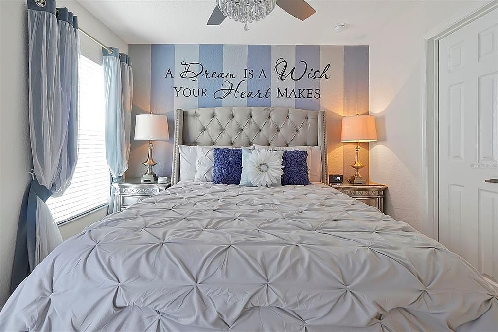 Sunshine Villa is a distinguished example of contemporary resort-style architecture located in the highly sought-after Windsor Hills Resort community in Kissimmee, Florida. Built originally with a modern design focus, this five-bedroom, five-bath residence has undergone a comprehensive renovation that modernizes every aspect of the home while maintaining its sophisticated curb appeal. Notable recent updates include a new roof installed in 2023, freshly resurfaced south-facing private pool, new water heaters added in 2024, and luxury vinyl plank flooring throughout, designed to enhance both elegance and durability. The home features an exceptional layout with two primary suites on the main level and uniquely themed bedrooms that comfortably accommodate up to 11 guests. Every detail in the interior decoration has been professionally curated for a soothing, sophisticated atmosphere enhanced by a calming color palette and artistic touches, making it a perfect sanctuary after a day at nearby Disney parks. The air-conditioned garage has been transformed into a custom game room, complete with a pool table, air hockey, arcade games, and modern gaming consoles, illustrated with murals by a local artist. Outdoor amenities are thoughtfully designed, including a private pool with privacy undisturbed by rear neighbors and a new Weber grill, ideal for entertaining. The property is sold fully furnished, ensuring a turnkey experience for investors or homeowners. Sunshine Villa is a proven high-performing short-term rental property, already securing $85,000 in confirmed bookings for 2025 and $20,000 for 2026, with all future bookings transferable with current management. The listing price is $785,000.