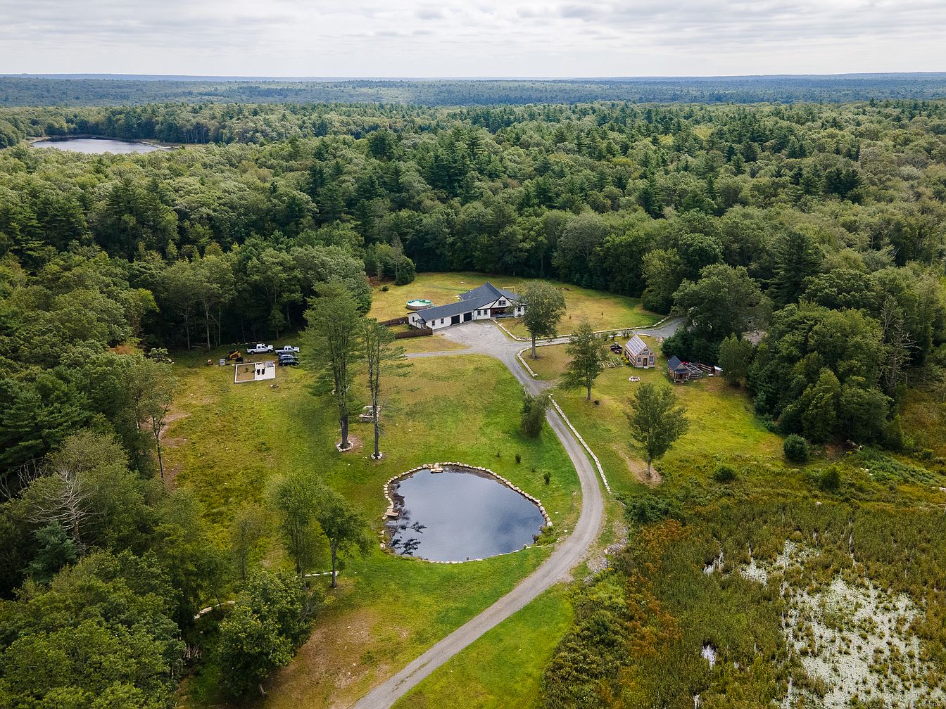 The Yellowstone Ranch is a recently built, custom 5-bedroom ranch located on over 25 acres in Killingly, Connecticut, offering both historic charm and contemporary design. While not a century home by date, it thoughtfully blends farmhouse aesthetics—such as a classic gabled roof, board-and-batten siding, and minimalistic interiors—with modern amenities, including a stainless kitchen, farmhouse sink, and expansive open-plan living. Built to provide privacy and equine-friendly features, the property also includes a chic 1-bedroom guest house (1,200 sq ft), an in-law suite, greenhouse, chicken coop, and a spring-fed pond, making it a unique countryside retreat. Recently completed, it is listed at $1,100,000, offering serene porches and engineered oak flooring throughout for a peaceful rural lifestyle.