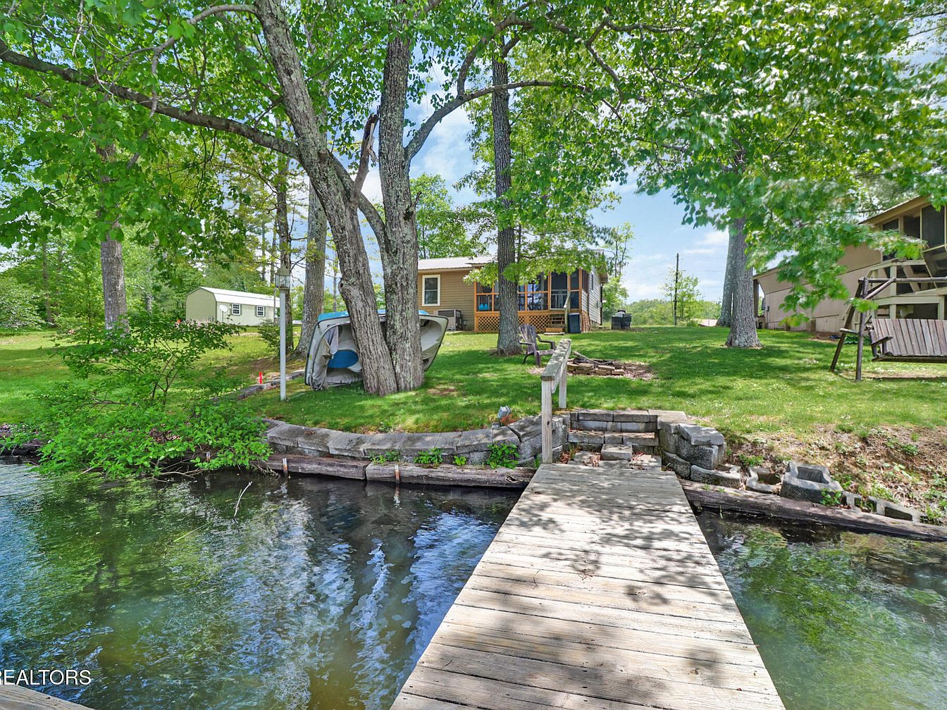 This charming lakeside cottage, located at 56 Linger Lake Lane in Crossville, TN, presents a perfect retreat for fishing enthusiasts and those seeking a peaceful getaway. The architectural style is a cozy cottage, designed with an open floor plan that seamlessly integrates the living room, dining room, and modernized kitchen. Notable features include reclaimed pallet wood walls and a stone gas fireplace that adds warmth and character to the living space. The home was built as a traditional lakefront cottage and has been updated to meet modern needs while retaining its rustic charm. Set on a spacious plot providing direct lake access, this property overlooks the fish-rich Linger Lake, known for species like bass, shell cracker, crappie, perch, and bream. The lake is designated for fishing and leisure boating but prohibits swimming, making it ideal for quiet, relaxing water activities. The house’s screened-in porch allows residents to enjoy serene lake views comfortably. Additional highlights include a covered front porch, dock, and all furnishings and pontoon boat included in the sale, enhancing its appeal as a weekend escape, short-term rental, or permanent residence. The listing price is set at $265,000, presenting excellent value for a fully updated lakefront property in a convenient location. This property epitomizes the laid-back lake lifestyle with its functional living arrangements and outdoor amenities, making it a must-see on the market.