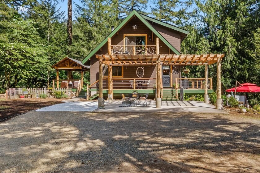 This charming Lindell Cedar home, exemplifying rustic architectural style, is situated in the serene city of Battle Ground, Washington. Set on an expansive 9.28-acre private and level plot, this property offers a unique connection to nature with approximately 900 feet of pristine river frontage. The home boasts large windows that flood the interior with natural light and frame stunning views of the lush surrounding landscape. Amenities include multiple decks, a private beach area, a hot tub, and a sauna—perfect for relaxation and entertaining. The listing price is $999,000, reflecting the exceptional value of this tranquil retreat designed for outdoor enthusiasts and wildlife lovers seeking an extraordinary lifestyle blend of comfort and nature.