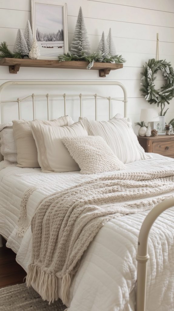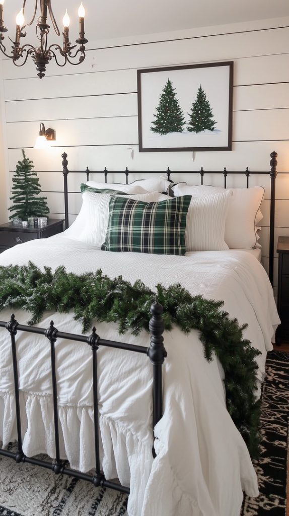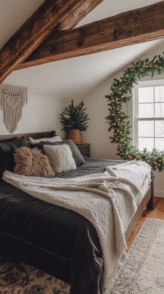Farmhouse Winter Bedroom with Festive Garland