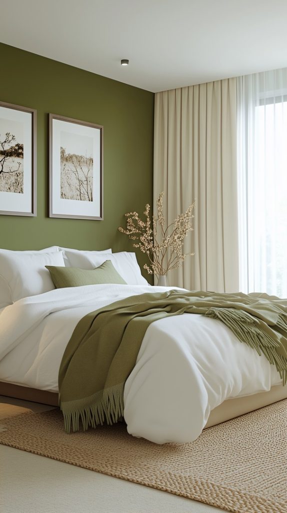 Sleek Winter Bedroom with Olive Green and White