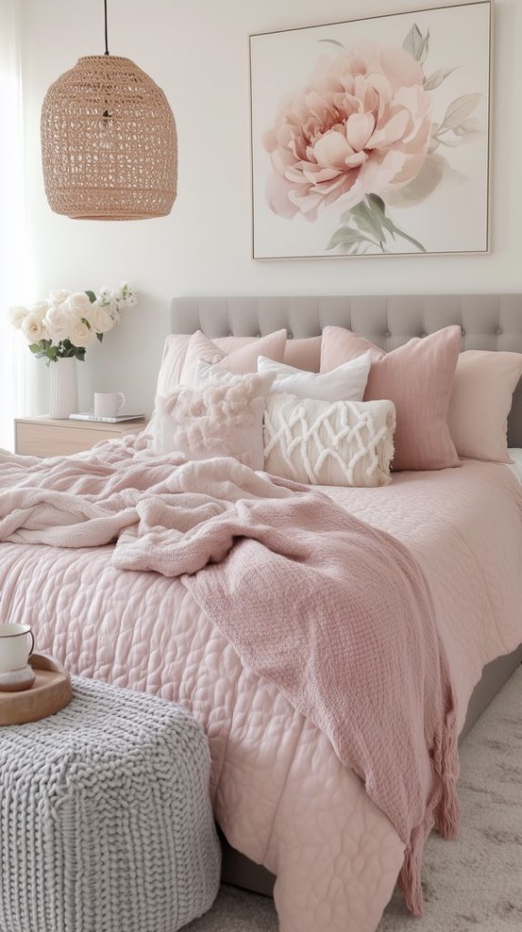 Soft Pink Winter Bedroom with Minimalist Vibes