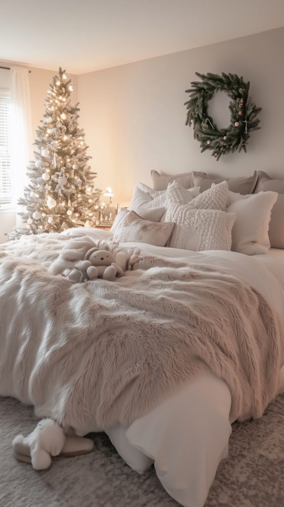 White Christmas Bedroom with Faux Fur Accents