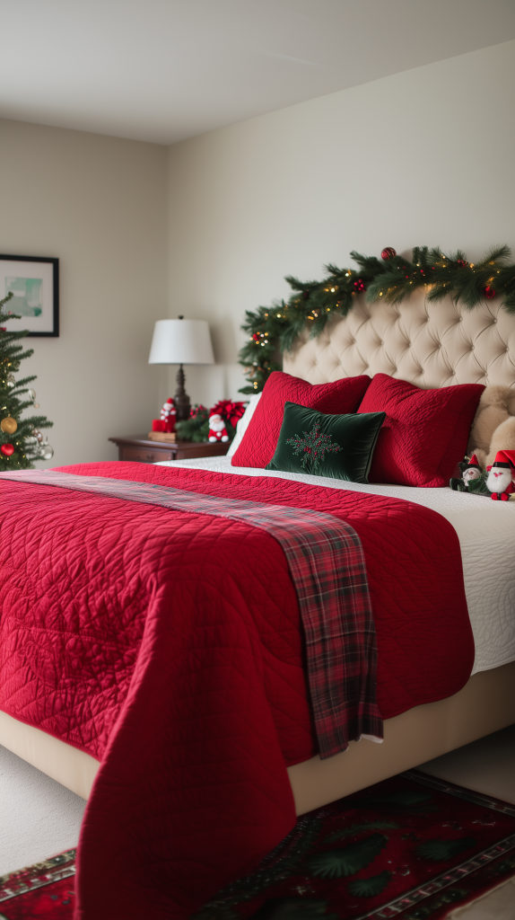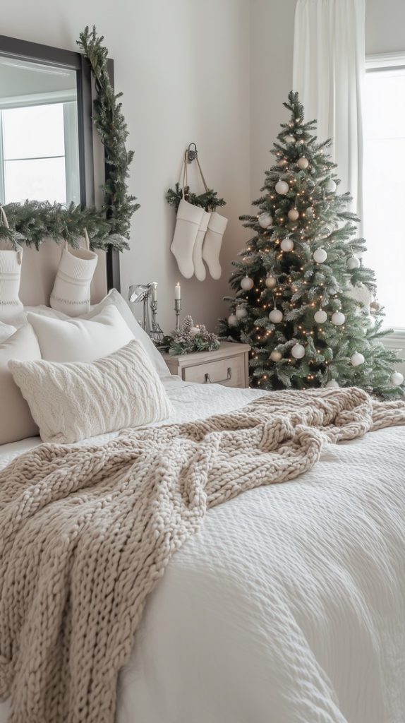 Classic Christmas Bedroom with Evergreen Accents